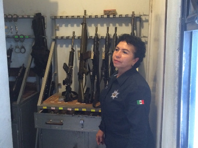 Dentro de los recorridos por las jefaturas de área de las región huasteca, la titular de seguridad pública conoció el estado en que se encuentran los inmuebles, mobiliario, equipo de cómputo, equipamiento y armamento con que trabajan los elementos de esos municipios.