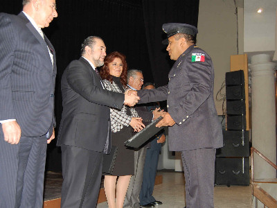 En el festejo se entregaron a los elementos 650 patentes de ascenso, 800 reconocimientos de antigüedad, 05 reconocimientos al mérito policiaco y 05 reconocimientos al valor heroico, quienes recibieron su reconocimiento de manos del presídium conformado por El Comisario Víctor Castillo Ortega, Director de la ASPE Coronel Alfonso Solís León, Coordinador Operativo de la DGSPE, General Javier Aguayo y Camargo, Director General de SPE, Maestro Enrique Galindo Ceballos, Secretario de la SSPE, Señora María Elena Abud Sarquis, Presidenta del Comité Estatal de Prevención del Delito, Comisario Miguel Naya Guerrero, Regidor del ayuntamiento de San Luis Potosí y el Coronel de infantería Tomas Reyes Rodríguez, representante de la 12ª zona militar.