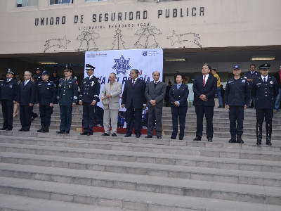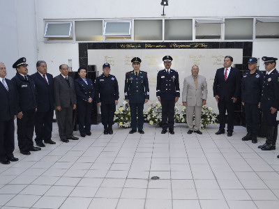Después, en la explanada del edificio de seguridad pública se rindieron los honores a la bandera correspondientes y se hizo entrega de ofrendas florales al muro de los policías caídos en cumplimiento de su deber, en donde los funcionarios montaron una guardia de honor.