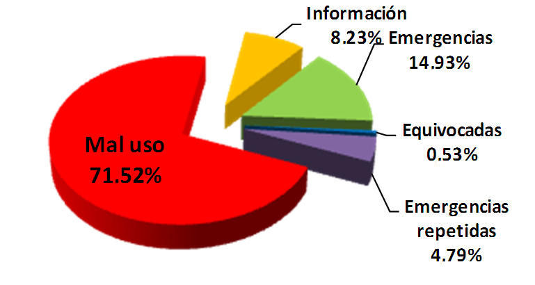 En un desglose detallado, la dependencia estatal dio a conocer que en el año 2011 el sistema de Emergencia 066 recibió 493 mil 250 llamadas, de esas, 40 mil 615 correspondieron a solicitudes de información; 2 mil 612 fueron reportes equivocados; 23 mil 603 llamadas de emergencias repetidas; de mal uso o broma 352 mil 775 reportes, siendo solo emergencia reales 73 mil 645, un 14.93 por ciento del total.