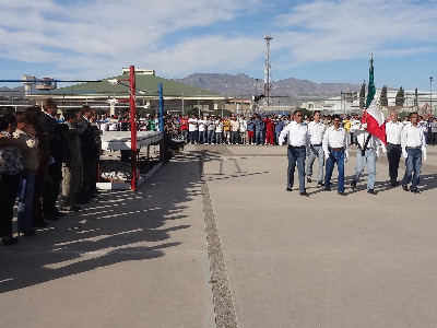 Los honores se llevaron a cabo en la explanada cívica del penal, contando con la presencia de la banda de guerra del Colegio de Bachilleres número 1 de Soledad de Graciano Sánchez, integrada por 12 alumnos, que con tambores y cornetas interpretaron el himno nacional mexicano.