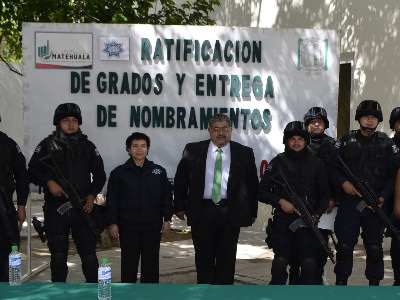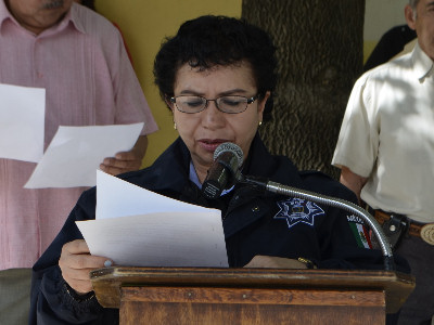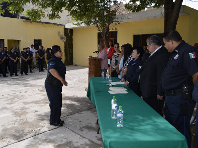 La secretaria de seguridad pública en el estado, María Concepción Tovar Monreal presidio la ratificación de grados y entrega de nombramientos a policías municipales de Matehuala.