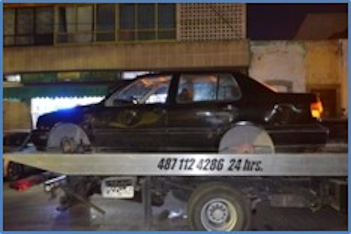 La primer acción se realizó en la calle San Luis y Canalón Juan Sarabia, colonia Azteca, en donde fue asegurado un vehículo marca VW, Tipo Jetta, modelo 1998, color negro, con reporte de robo del día 30 de Diciembre del 2015; encontrándose estacionado faltándole a simple vista neumáticos, auto estéreo, cabeceras y focos.