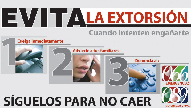 La Secretaría de Seguridad Pública del Estado mantiene una campaña de difusión a través de spots y trípticos para prevenir a la población de ser objeto de extorsiones telefónicas y como apoyo al ciudadano pone a disposición los teléfonos 089 para denuncia anónima, y 066 para emergencias.