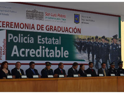 Este día 421 elementos de la Secretaría de Seguridad Pública del Estado culminaron su capacitación para conformar el Primer Módulo de la Policía Estatal Acreditable con lo que San Luis Potosí se convierte en la primer entidad en todo el país al conformar este agrupamiento policial con la totalidad de sus unidades y con el mayor número de integrantes como lo marca el Sistema Nacional de Seguridad Pública.