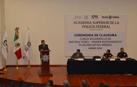 Como parte del Plan Nacional de Capacitación para Policías en el Sistema de Justicia Penal Acusatorio, 40 elementos de la Secretaría de Seguridad Pública del Estado, concluyeron el curso “Desarrollo de Instructores-Primer Respondiente” Plan Iniciativa Mérida en las instalaciones de la Academia Superior de la Policía Federal en esta capital.