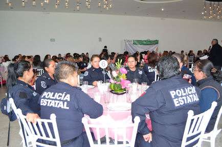 En la reunión organizada por Olga Asunción Portillo de Gutiérrez, presidenta del Voluntariado de la SSPE, en el “Salón Arezzo”, Libny Iracema Dircio, representante de este grupo altruista, dio la bienvenida a más de 200 mujeres de las áreas Operativas y Administrativas de la Secretaría de Seguridad Pública.