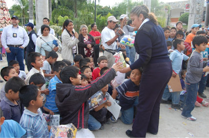 Con aportaciones voluntarias de efectivos de la SSP se entregaron alrededor de seis mil juguetes, bolsas de dulces, chamarras, zapatos y cobijas en las comunidades de Pozuelos, Mesa de Conejos y Capulines del Municipio de San Luis Potosí. Así como en la Cabecera Municipal de Tanlajás y comunidades de Tamazunchale en la Zona Huasteca.