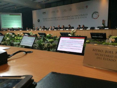 San Luis Potosí participó el Primer Encuentro de Conferencias Nacionales de Seguridad Pública y Procuración de Justicia celebrado en la Ciudad de México, para ser parte de la implementación del programa nacional de capacitación en el nuevo sistema de justicia penal en materia de coordinación operativa para las instituciones de seguridad pública.