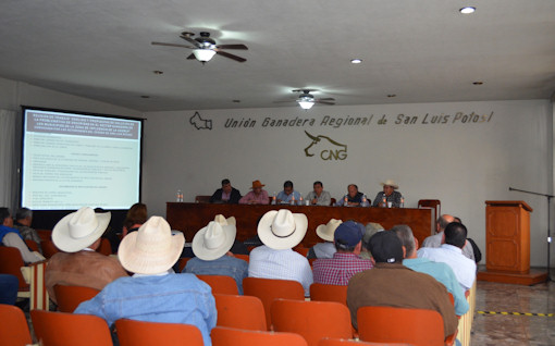 En el marco de la estrategia de seguridad para combatir el delito de abigeato en San Luis Potosí, impulsada por el Gobernador del Estado, Juan Manuel Carreras López, se reunieron el secretario de Seguridad Pública, General Arturo Gutiérrez García; el Procurador General de Justicia, Federico Arturo Garza Herrera y el director de la Policía Ministerial, José Guadalupe Castillo Celestino, con productores de la Unión Ganadera Regional de San Luis Potosí.