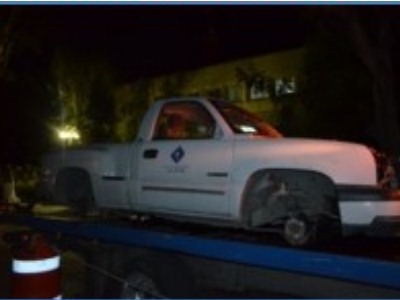 El primero de ellos fue asegurado durante recorrido sobre el camino de terracería que lleva a la comunidad Laguna de San Vicente, en el municipio de Villa de Reyes, en donde el vehículo marca GMC, tipo, pick up, modelo 2003, color blanco, con reporte de robo sin violencia del 11 de Diciembre del 2015, de las calles del Fraccionamiento Españita, el cual se encontró abandonado y con huellas de desvalijamiento.