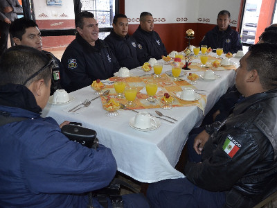 Los convivios incluyeron desayunos en Matehuala y Rioverde, así como una comida para elementos en Ciudad Valles, en donde además se rifaron obsequios entre los asistentes.