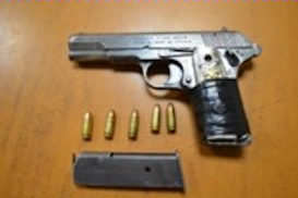 La acción se realizó en la calle Pinzón y Meseta, colonia Cactus, en donde fue asegurado Mario Alberto, de 34 años de edad, al momento en que intentaba abordar un automóvil Nissan, tipo Tsuru, color rojo, quien portaba un arma de fuego y un cargador con 5 cartuchos.