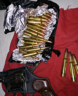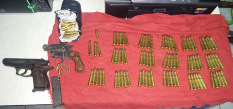 Al dialogar con ellos mostraron nerviosismo por lo que se procedió a una revisión, encontrándoles en una bolsa de nylon y en un morral de ixtle las armas y cartuchos. Uno de ellos traía fajada en la cintura una de las armas.