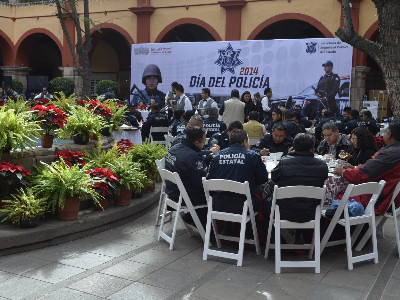 En la celebración del día del policía 2014 se brindó un desayuno a los agentes y se llevó a cabo una entrega de obsequios a los asistentes. |