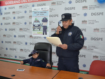 La Secretaría de Seguridad Pública del Estado (SSPE) en conjunto con la Asociación “Cumple un Sueño” A.C, en una emotiva ceremonia, nombraron a Jeriel Ricardo Tamay Estrella de 4 años de edad como director honorario de la Policía Estatal por un día.