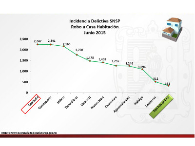 En el caso del delito de robo a vivienda, este se redujo en un 55 por ciento, al pasar de 602 robos a 331. Entidades como Querétaro registran 1 mil 255 robos, Aguascalientes 1 mil 246, Guanajuato 2 mil 24 en el mismo periodo.