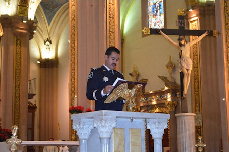 La celebración de esta fecha comenzó con una misa de acción de gracias en la Catedral Metropolitana de San Luis Potosí, oficiada por el arzobispo Juan Carlos Cabrera Romero, quien en su mensaje reconoció la labor que realizan las y los policías de las diversas corporaciones por el cuidado de la ciudadanía.