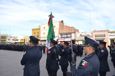 Luego, en la explanada de la Dirección General de Seguridad Pública del Estado (DGSPE) se rindieron honores a la bandera.