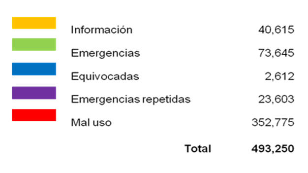 En un desglose detallado, la dependencia estatal dio a conocer que en el año 2011 el sistema de Emergencia 066 recibió 493 mil 250 llamadas, de esas, 40 mil 615 correspondieron a solicitudes de información; 2 mil 612 fueron reportes equivocados; 23 mil 603 llamadas de emergencias repetidas; de mal uso o broma 352 mil 775 reportes, siendo solo emergencia reales 73 mil 645, un 14.93 por ciento del total.