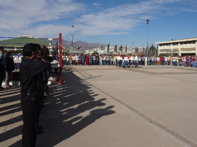 Los honores se llevaron a cabo en la explanada cívica del penal, contando con la presencia de la banda de guerra del Colegio de Bachilleres número 1 de Soledad de Graciano Sánchez, integrada por 12 alumnos, que con tambores y cornetas interpretaron el himno nacional mexicano.