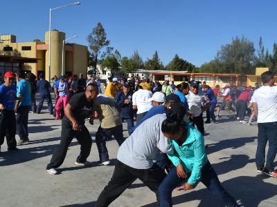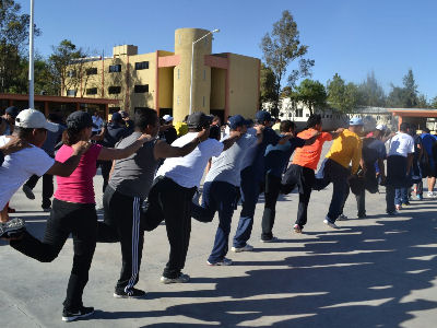 SAN LUIS POTOSÍ, S.L.P.- La Secretaría de Seguridad Pública del Estado a través de su Unidad de Deportes y del Instituto Postino del Deporte (INPODE) implementó una mega clase de activación física en la que participaron 400 elementos de la Policía Estatal, Municipal y custodios de la Dirección General de Prevención y Reinserción Social.