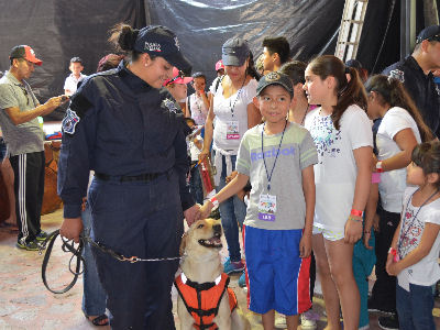 Los pequeños junto con sus padres disfrutaron de una demostración del Grupo Canino y de divertidos juegos que organizaron las Damas Voluntarias para animar la convivencia familiar además de recibir dulces.