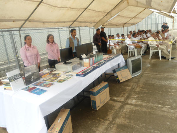 El evento realizado en el Centro de Reinserción Social de Ciudad Valles se hizo entrega de computadoras, equipo multimedia, televisores, un acervo de libros y material didáctico en beneficio de los reclusos para que continúen con su educación y capacitación.
