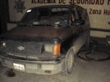 Los vehículos asegurados fueron una camioneta marca Chevrolet, Aeroestar, color café, modelo 1993, con placas de circulación con logotipo de discapacitado, la cual se encontraba abierta sin seguros portando en el interior 03 tambos de plástico conteniendo gasolina con 200 litros cada uno .